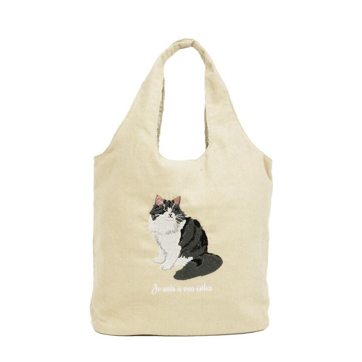 愛嬌のある表情が可愛い犬と猫の刺繍がポイントのコーデュロイバッグです。